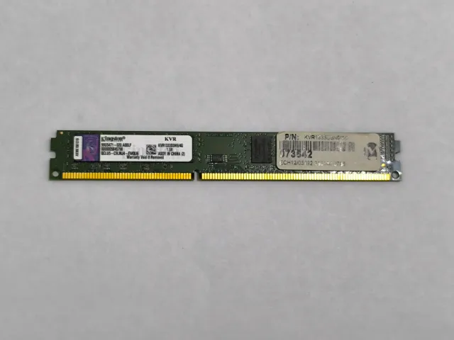Módulo de memoria RAM Kingston. - Modelo: KVR1333D3N9/4G - Capacidad: 4GB - Tipo: DDR3 - Voltaje: 1.5V - Fabricado en China.