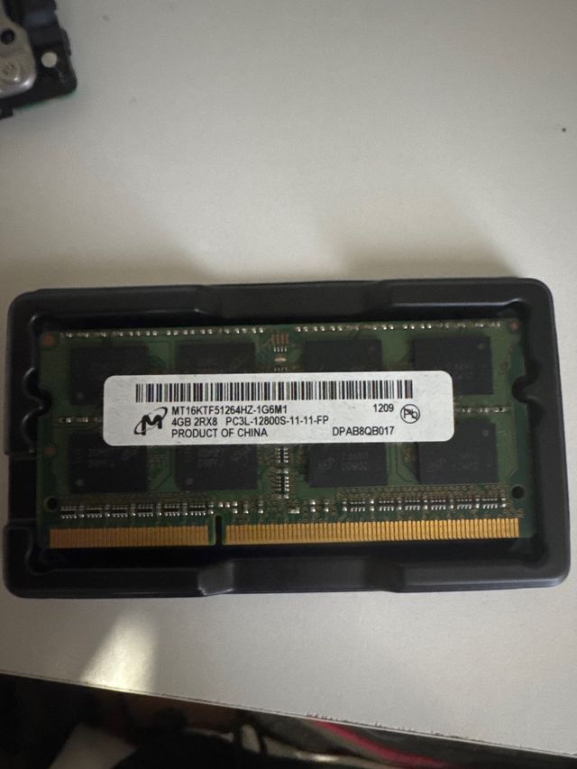 Módulo de memoria RAM de 4GB. - Modelo: MT16KTF51264HZ-1G6M1 - Tipo: PC3L-12800S - Velocidad: 1600MHz - Formato: SODIMM
