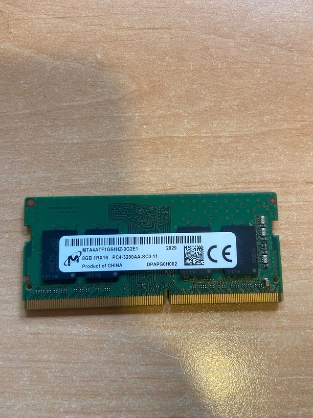 Módulo de memoria RAM Micron de 8GB. - Modelo: MTA4ATF1G64HZ-3G2E1 - Tipo: PC4-3200AA-SC0-11 - Capacidad: 8GB - Configuración: 1RX16 - Fabricado en China