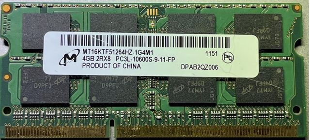 Detalles del productoMódulo de memoria RAM para portátil de 4GB.