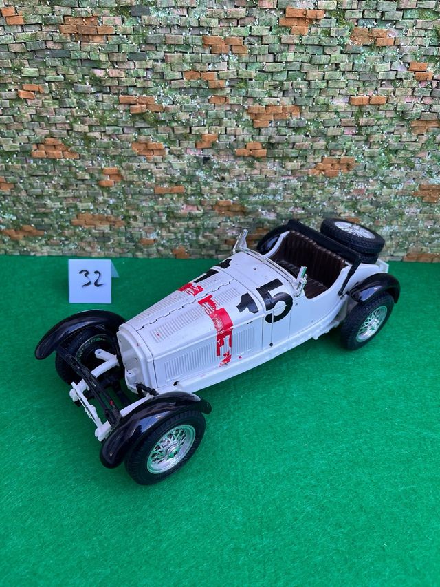 Mercedes-Benz SSK / SSKL fabricado por Bburago (Made in Italy) escala 1:18, pieza clásica. El modelo se encuentra como nuevo para su antigüedad, aunque presenta marcas del paso del tiempo y le falta el cristal delantero (ver imágenes).