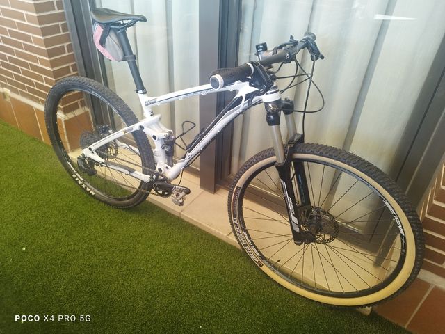 Detalles del productoBicicleta 29" doble suspensión Mérida Big.Ninety-Nine 900, monoplato grupo completo Sram Eagle GX 10-50 nuevo (valorado en 500 euros), suspensión delantera rebound con bloqueo desde manillar, amortiguador trasero fox float ctd con tres posiciones, tija de carbono, puños ergonómicos propalm , se entrega con revision recien hecha y ruedas nuevas tubelizadas