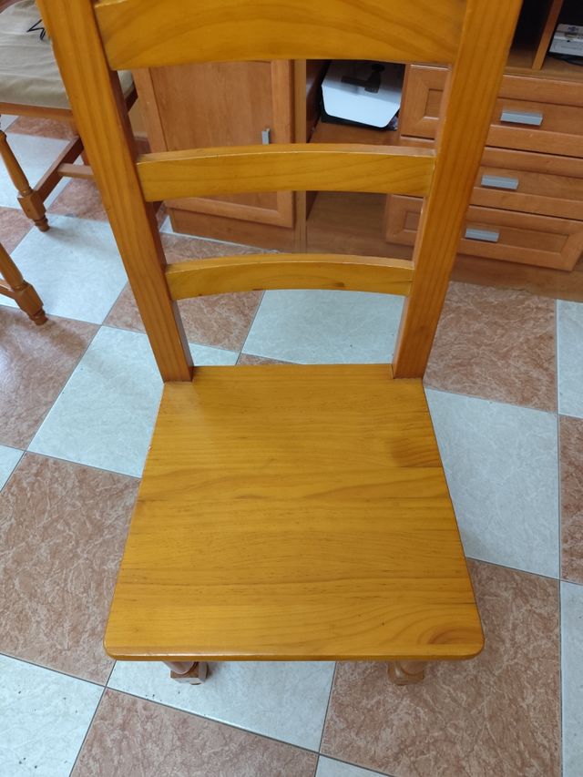 Detalles del productoConjunto de mesa y cuatro sillas de madera maciza. Ideales para comedor o cocina.