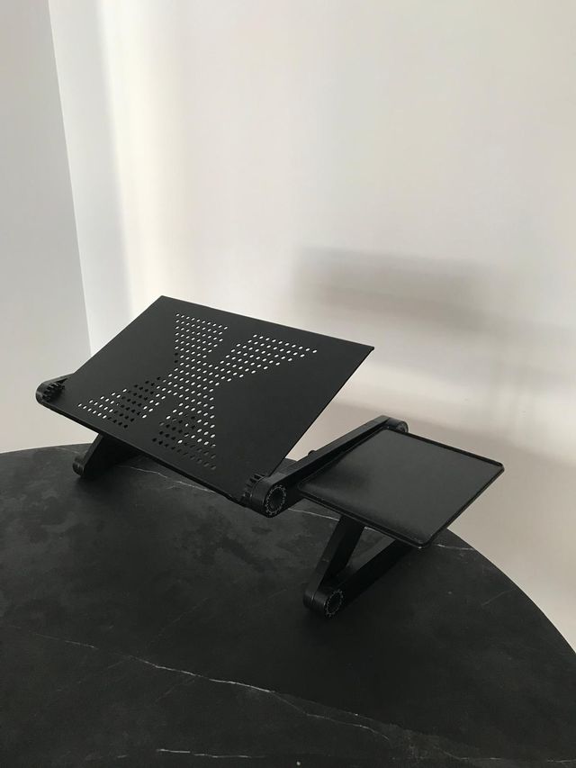 Permite hacer uso de ella tanto sobre otra mesa cómo en el sofá o en la cama. Cuenta con articulaciones que permite adaptarla a la altura que se prefiera. Muy útil para trabajar de pie o tumbado.