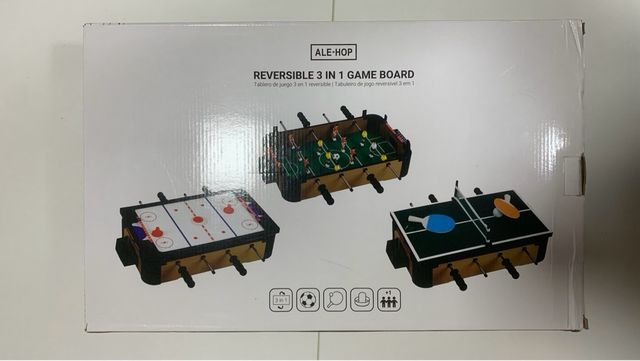 Detalles del productoJuego de mesa 3 en 1 en excelentes condiciones. Incluye futbolín, ping pong y hockey sobre mesa. Se entrega con todos sus accesorios.