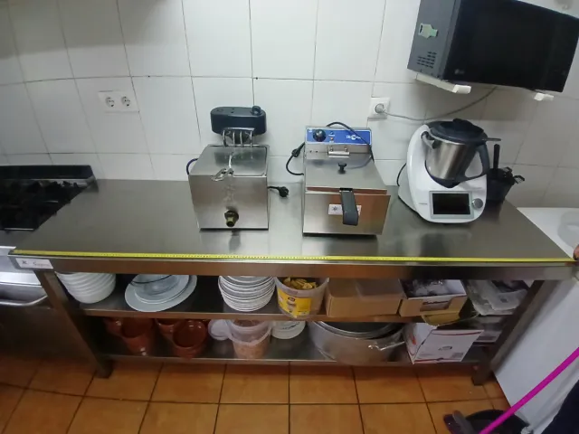 Detalles del productoMesa de trabajo de acero inoxidable, ideal para cocinas profesionales o negocios de hostelería. Su superficie lisa y resistente la hace perfecta para el uso diario.