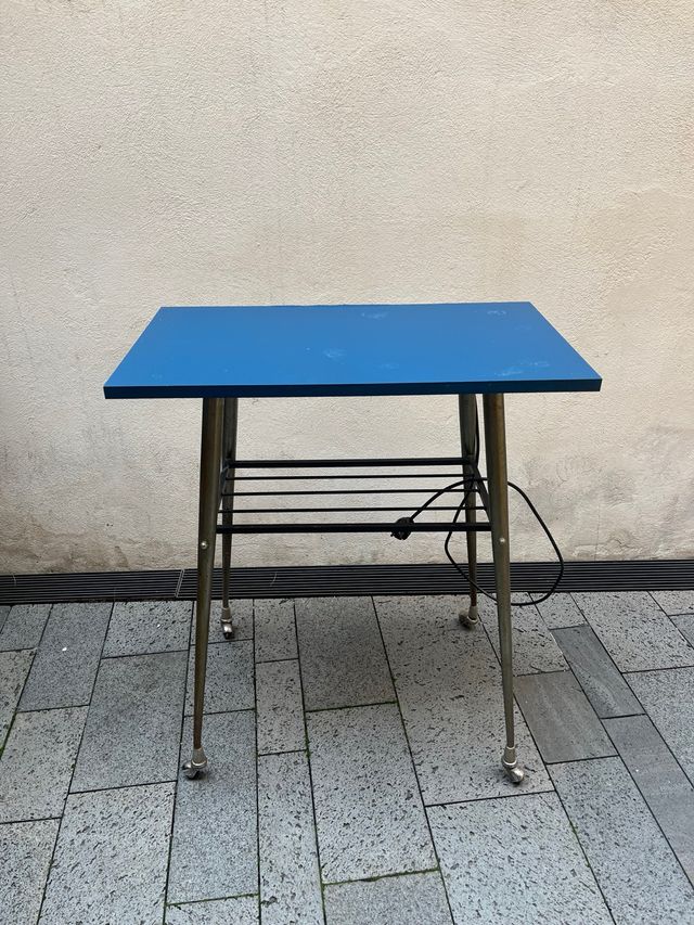 En condiciones aceptables · Azul y Plateado · Metal y Madera