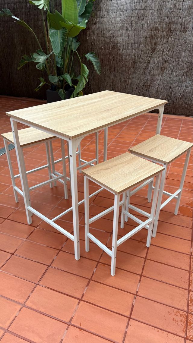 Mesa alta y 4 taburetes