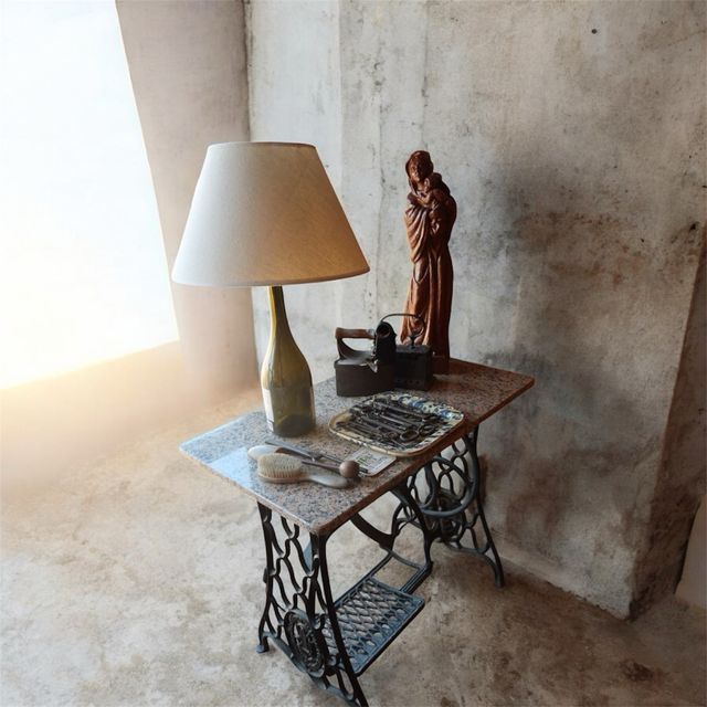 Mesa antigua pie máquina coser hierro
