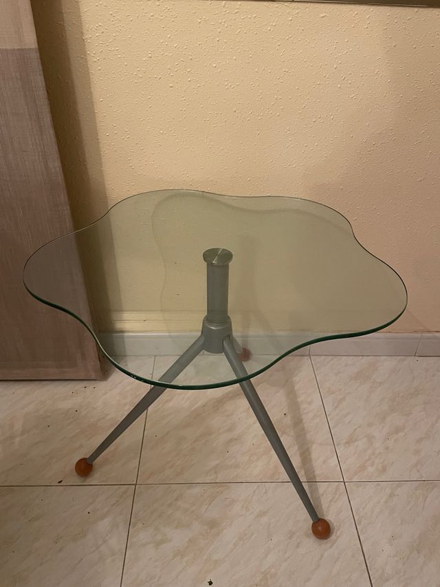 Mesa auxiliar cristal y metal