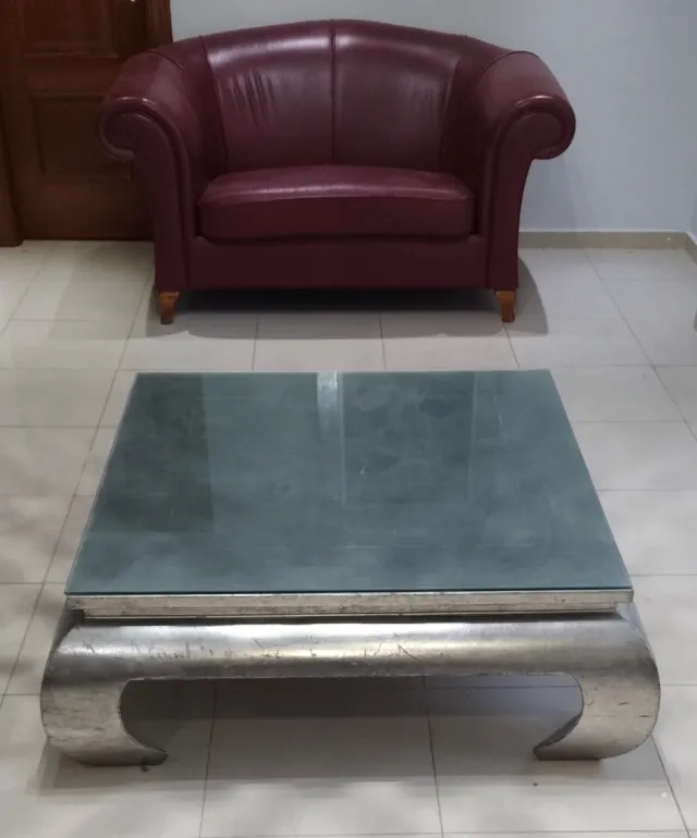 Mesa auxiliar cristal y metal
