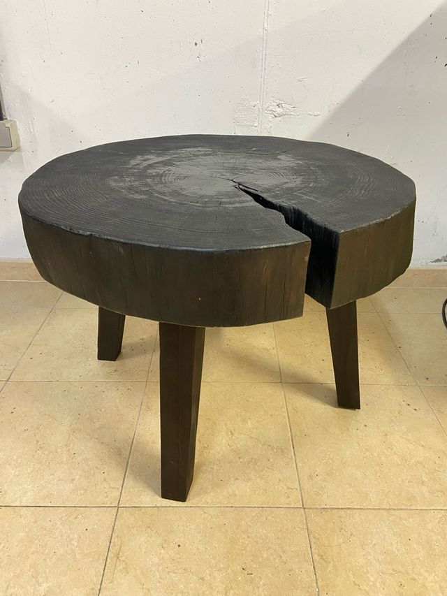Mesa auxiliar tronco madera negra
