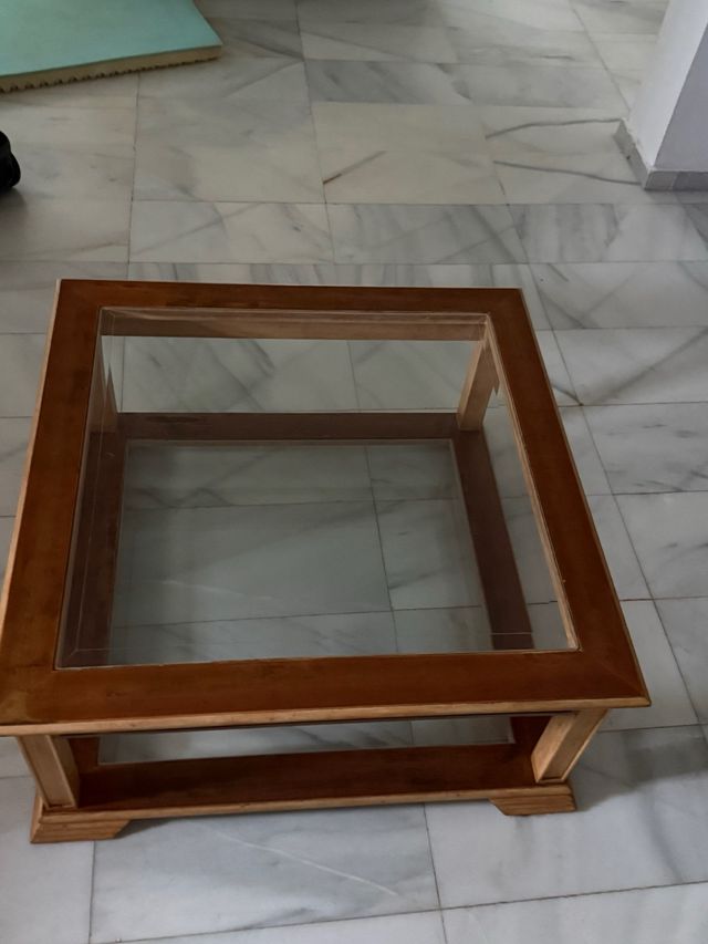 Mesa baja de madera y cristal