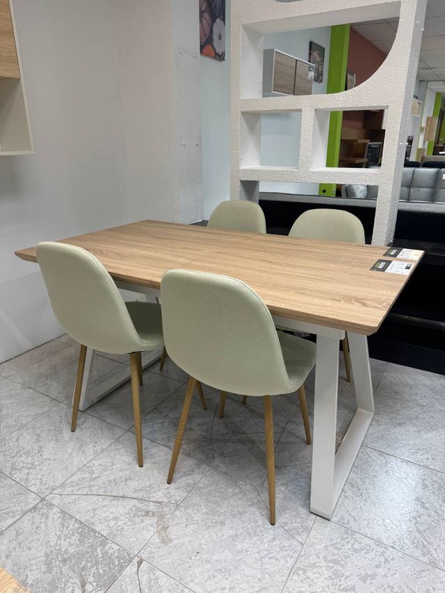 Mesa Bicolor Madera/Blanca + 4 Sillas Beige NUEVO