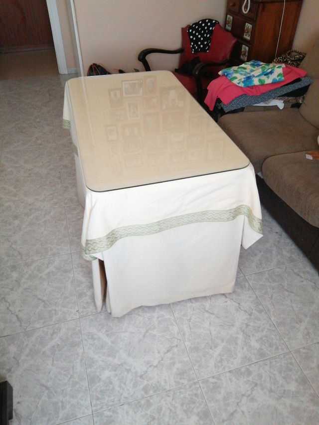 Mesa camilla 110x60cm con faldón y cristal