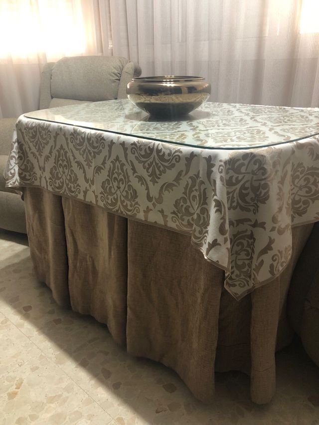 Detalles del productoMesa de comedor de madera maciza que sirve tanto para el invierno como para el verano. Se regala el cristal pero no la faldilla ni los tapetes. Medidas 120 cm por 80 cm y 80 cm de alto. Precio de la ropa de camilla 30€. Medidas del producto