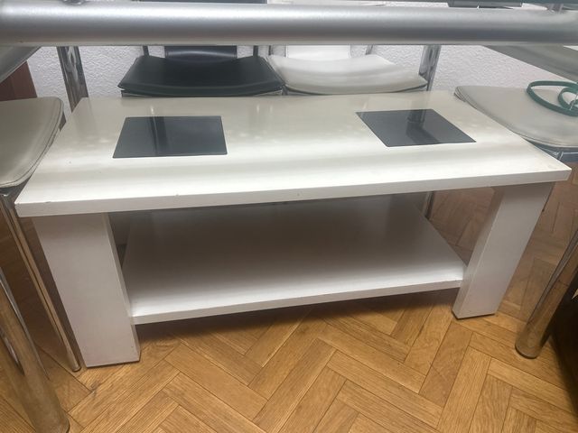 Mesa centro blanca con detalles negros