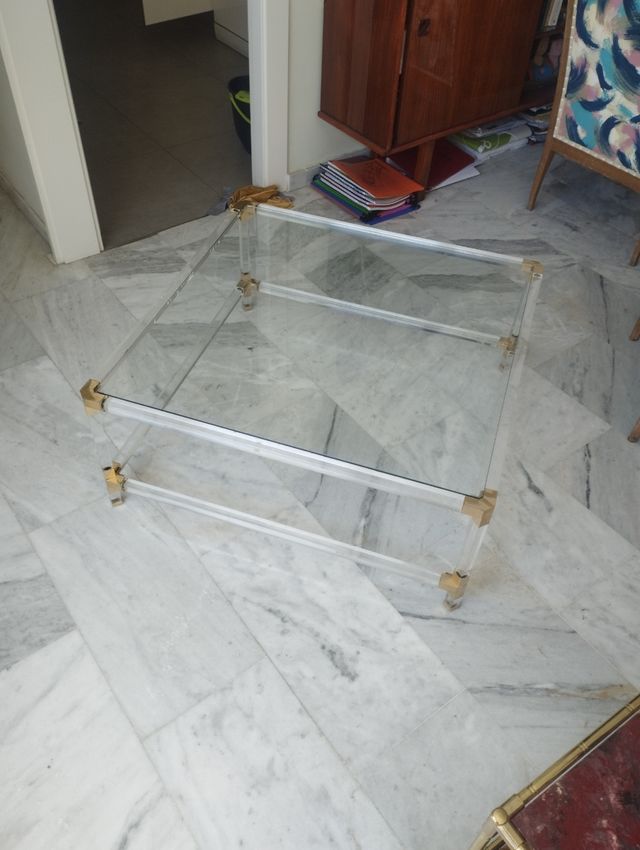 Mesa centro metacrilato dorada