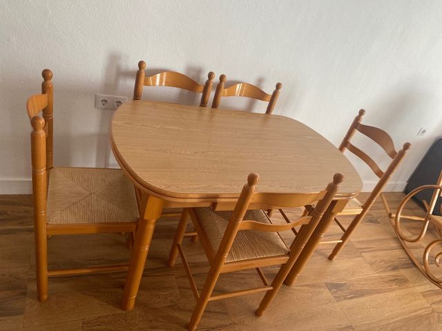 Mesa cocina + 5 sillas madera