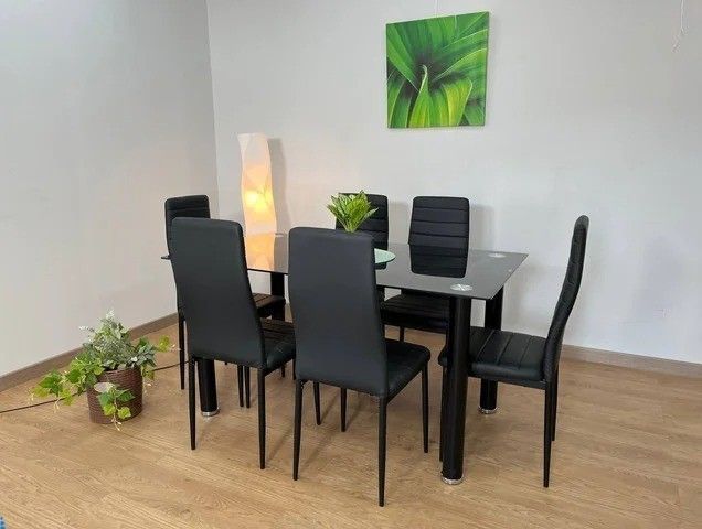 Mesa Comedor Cristal Negra + 6 Sillas polipiel!!