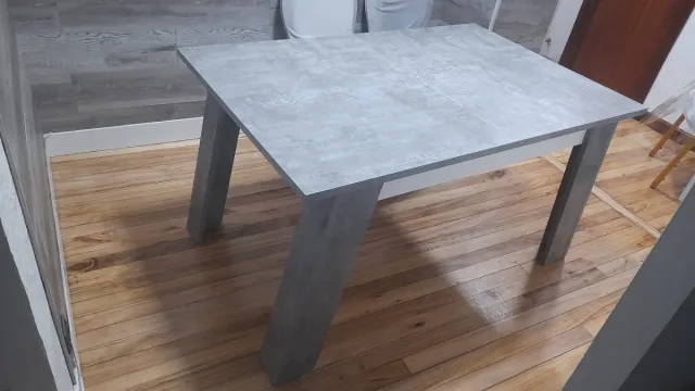 Mesa comedor extensible gris y blanco