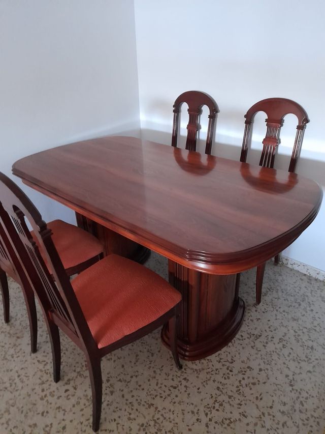 Detalles del productoSe vende mesa comedor extensible de madera maciza con cristal a medid y 4 sillas.