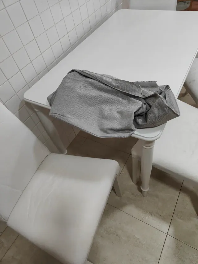Conjunto de mesa de comedor con cuatro sillas a juego de Ikea. El diseño es moderno y funcional. - Incluye 4 sillas. - Mesa de comedor.