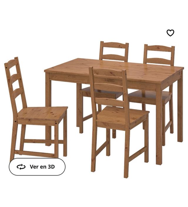 Detalles del productoConjunto de mesa y 4 sillas modelo Jokkmokk de Ikea, de madera maciza de pino. Utilizado 3 meses, practicamente nuevo. Precio Ikea islas, 219€ y rebajado a 179€.