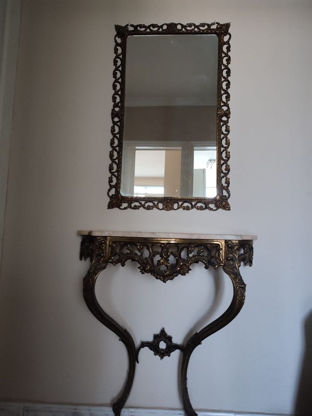 Mesa consola mármol y espejo bronce vintage