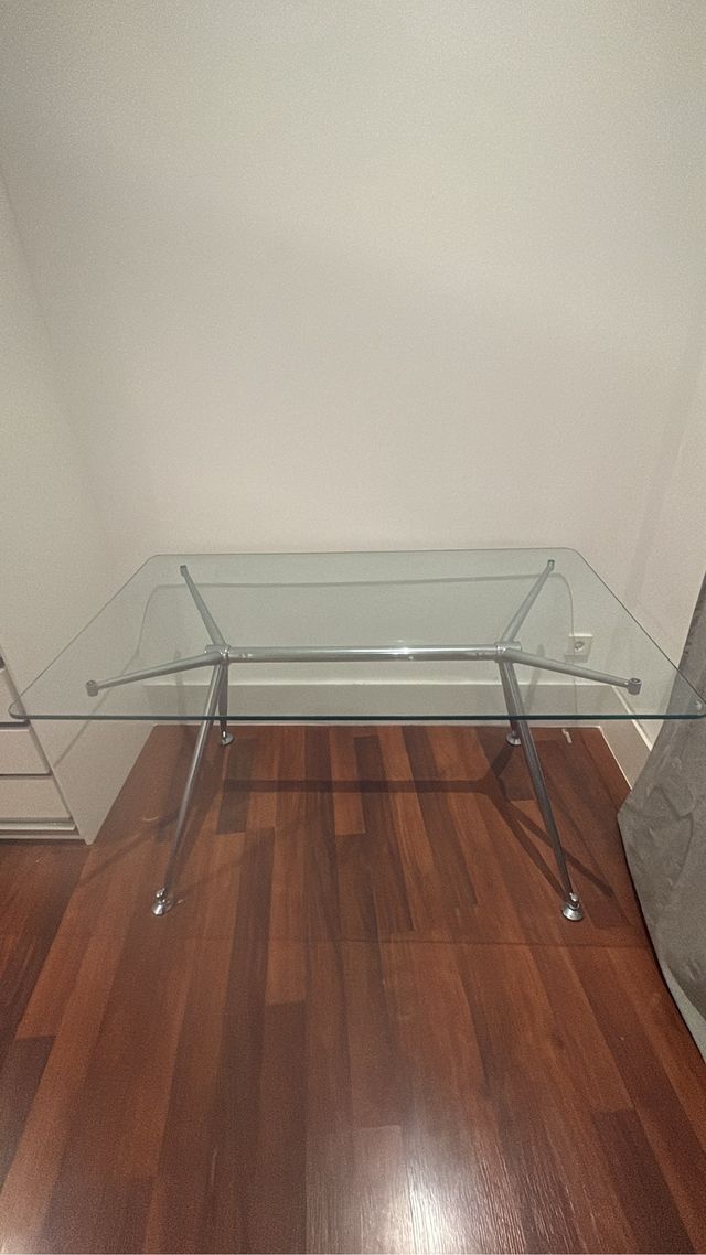 Mesa cristal patas metálicas