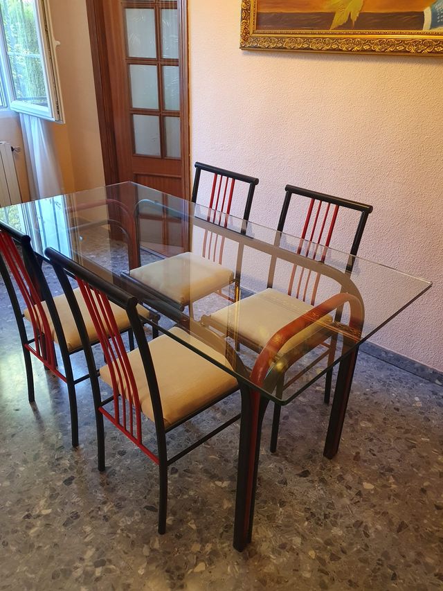 Mesa cristal y 4 sillas comedor