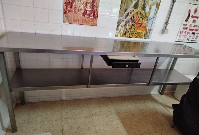Detalles del productoMESA DE ACERO INOXIDABLE SIRVE PARA BARES,COCINAS,RESTAURANTES, CARNICERIAS,ETC, SE VENDE. Medidas del producto
