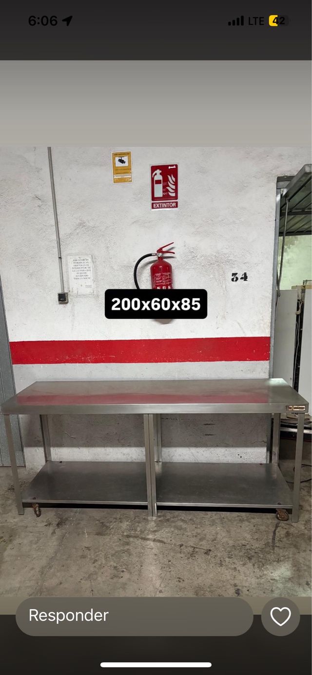 Detalles del productoMesa de trabajo de acero inoxidable con dos estantes.