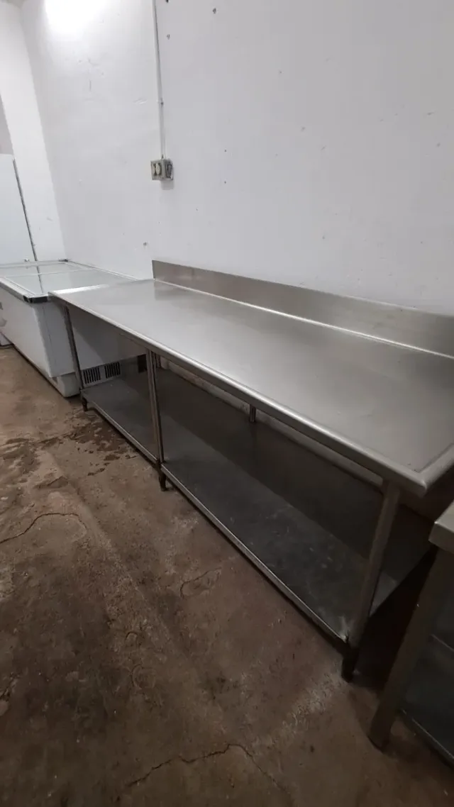 Mesa de acero inoxidable con estantes