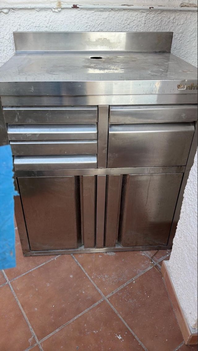 Detalles del productoMesa de trabajo de acero inoxidable, ideal para hostelería o cafeterías. Cuenta con una superficie amplia y un diseño funcional.