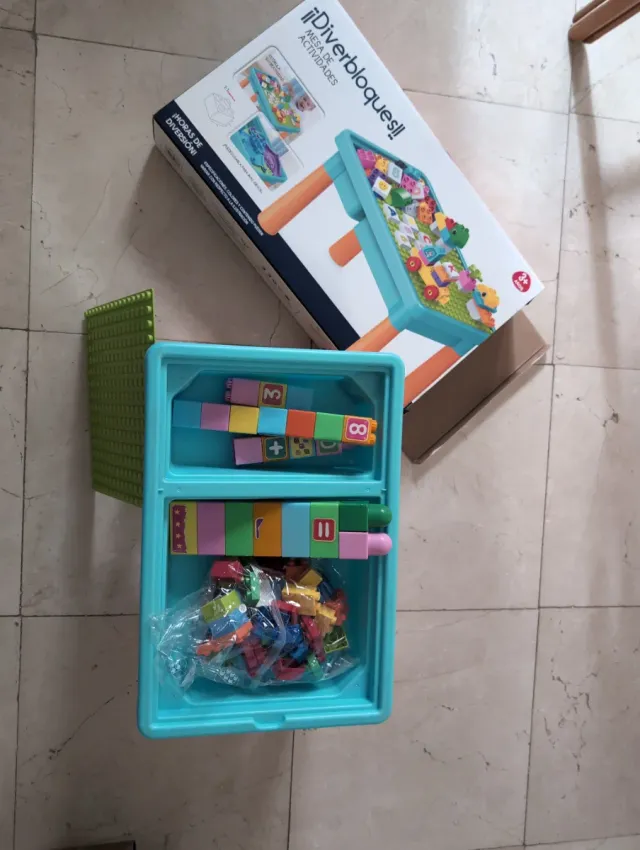 Detalles del productoMesa de actividades Diverbloques con bloques para construir.