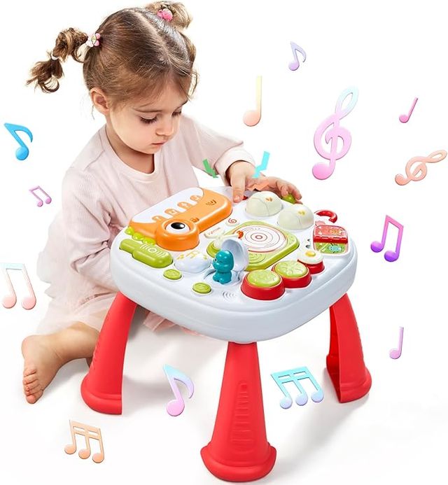Detalles del productoMeribbit Juguetes Niños 18 Meses, Mesa Actividades Bebe Jugetes Bebes Niña 2 3 años Montessori Mesa con Sonido y Luces Instrumentos Musicales Infantiles Regalo para Niños Niñas