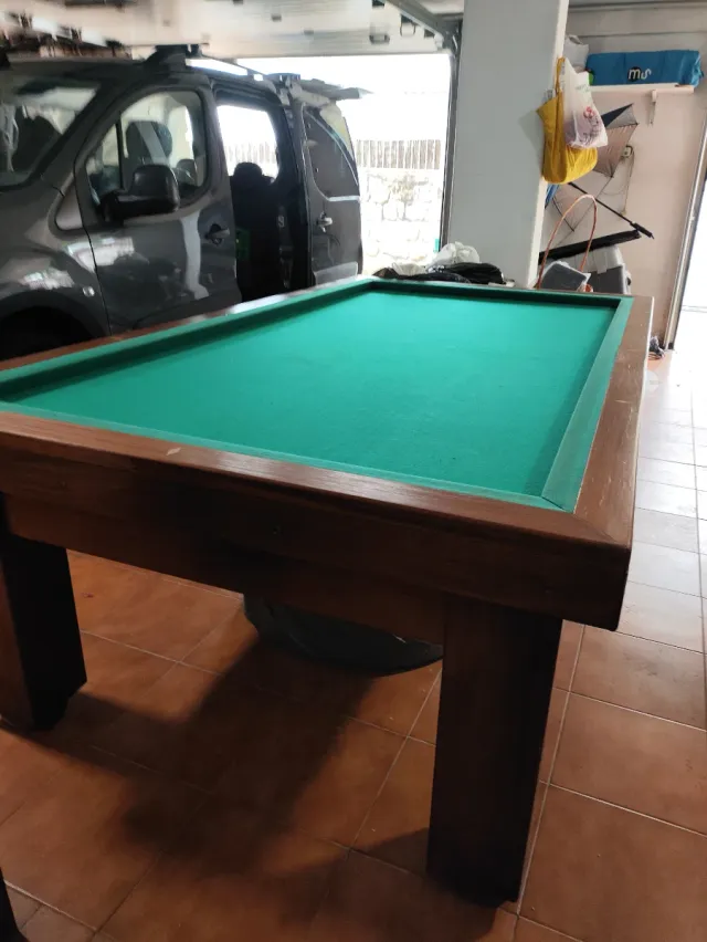 Mesa de billar de estilo español, ideal para disfrutar en casa. - Estructura de madera robusta. - Tapete de color verde. - Medidas 135 x 245 x 77