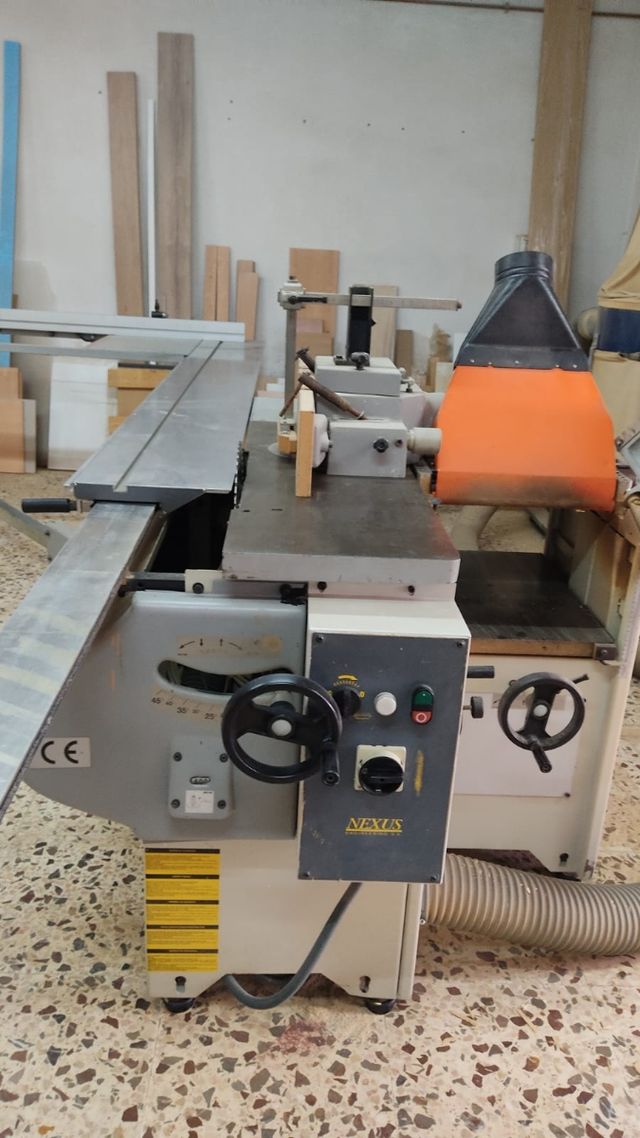 Mesa de carpintería multifuncional Nexus. - Incluye sierra circular. - Cepilladora. - Regruesadora. - Motor potente. - Ideal para trabajos de madera.