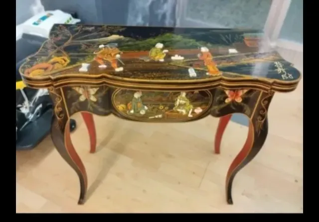 Detalles del productoElegante mesa de cartas con un diseño oriental detallado. Perfecta como pieza decorativa.