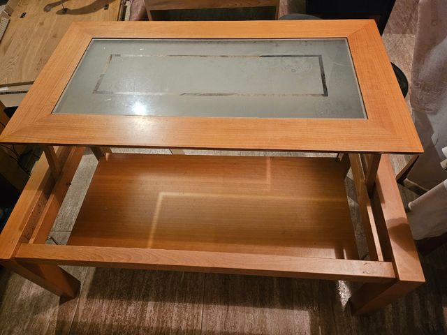 Mesa de centro elevable madera y cristal
