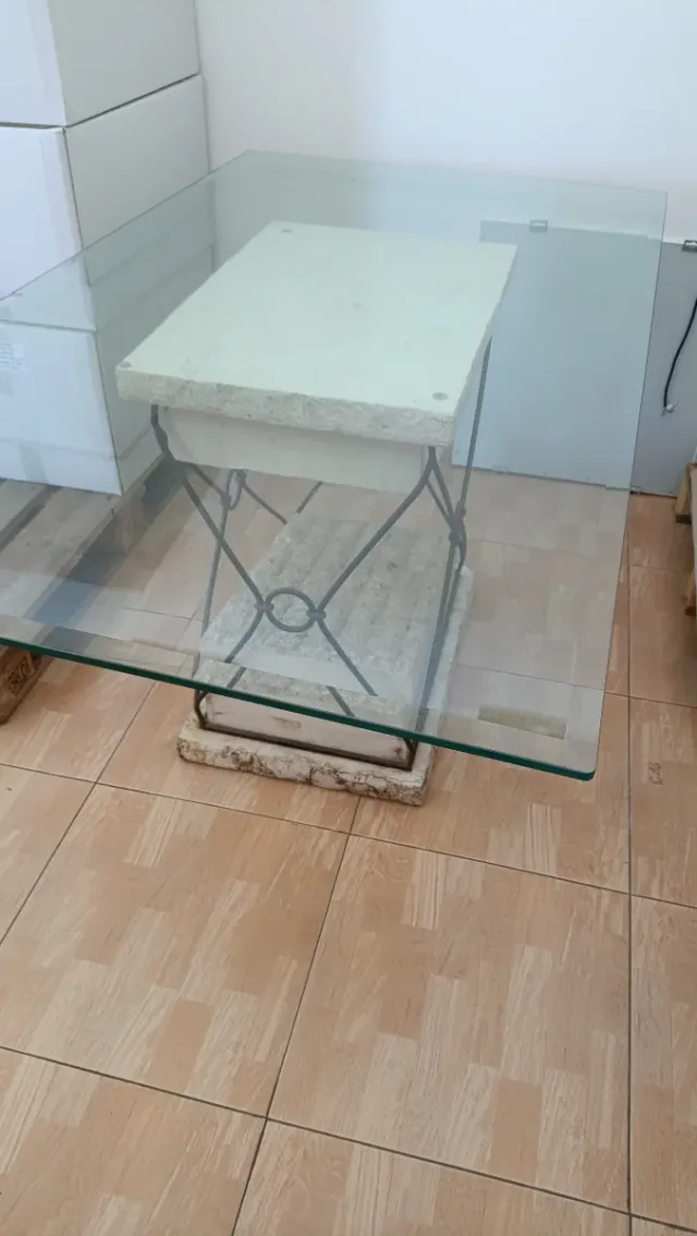 Mesa de centro y espejo de cristal y piedra