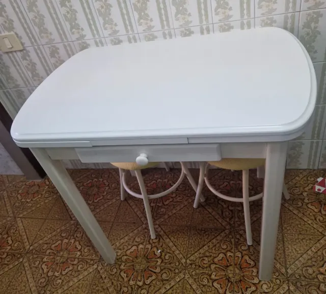 Mesa de cocina blanca con cajón