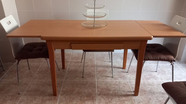 Detalles del productoConjunto de mesa de cocina extensible con cuatro sillas.
