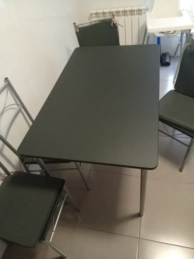 Detalles del productoConjunto de mesa de cocina SIN sillas.En color negro,nueva sin desperfectos. A recoger en Ponferrada y alrededores .