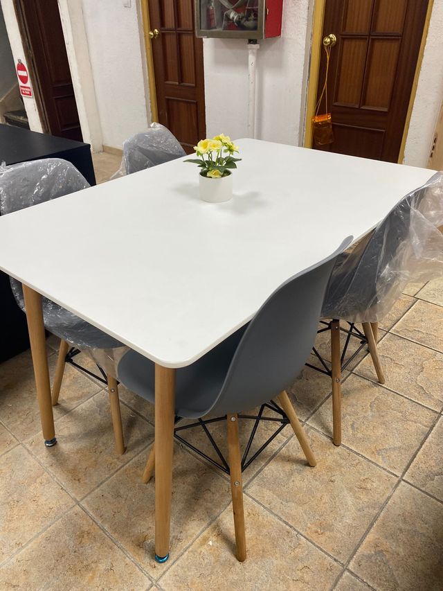 MESA DE COMEDOR BLANCA + 4 SILLAS NUEVO