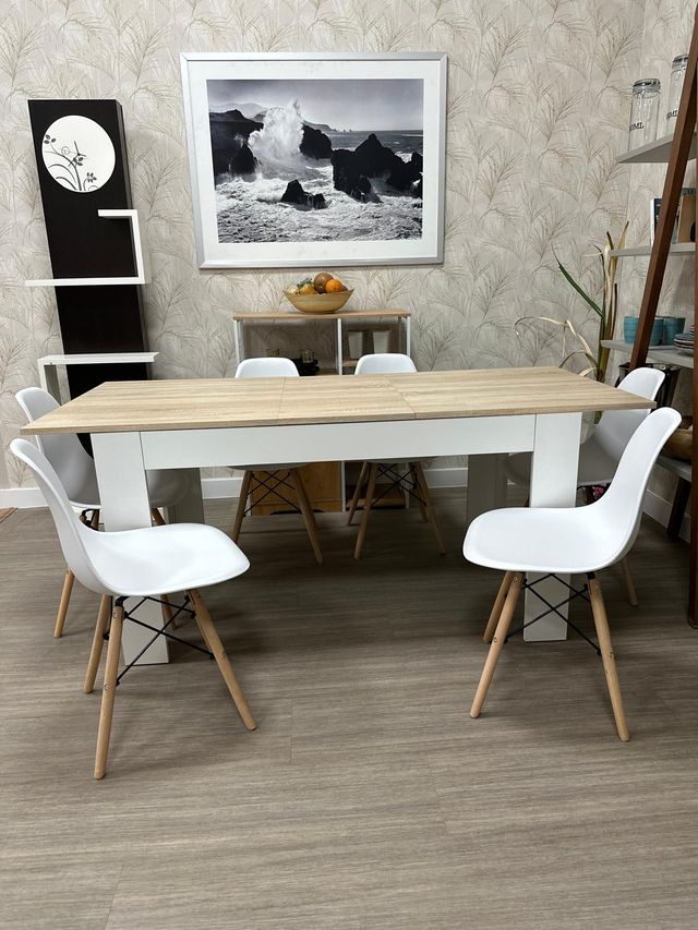 MESA DE COMEDOR EXTENSIBLE CON 6 SILLAS NUEVAS