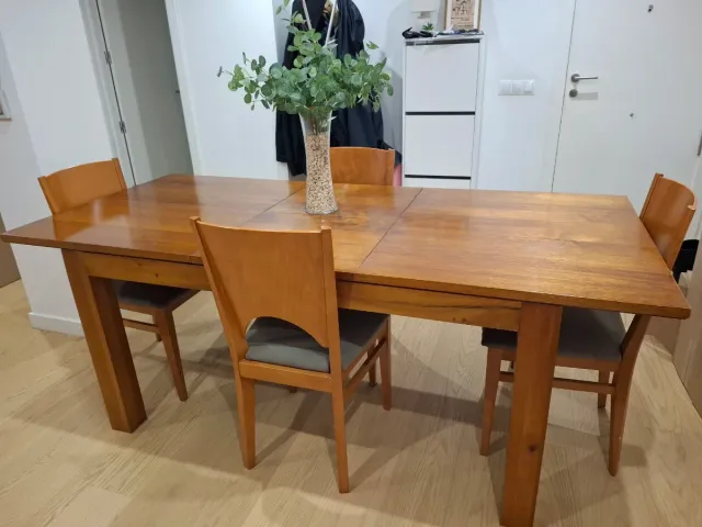 Mesa de comedor extensible de madera + 4 sillas