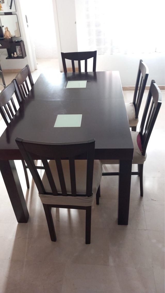 Detalles del productoConjunto de mesa de comedor y seis sillas.