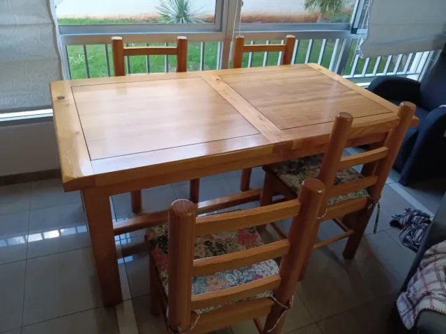 Mesa de comedor y 4 sillas de madera